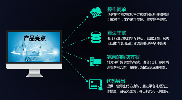 普開人工智能實驗室——AI機(jī)器學(xué)習(xí)實驗環(huán)境:通過易操作、圖形化、拖拽式的界面,為初學(xué)者用戶量身定做了一個簡單高效的機(jī)器學(xué)習(xí)訓(xùn)練平臺。該系統(tǒng)通過簡單的5個步驟,即可定制化訓(xùn)練出用戶所需的工作模型:該系統(tǒng)同時也支持各行業(yè)的工程應(yīng)用,用戶可以使用該訓(xùn)練系統(tǒng)開發(fā)對應(yīng)需求的工程應(yīng)用及科研服務(wù)。
